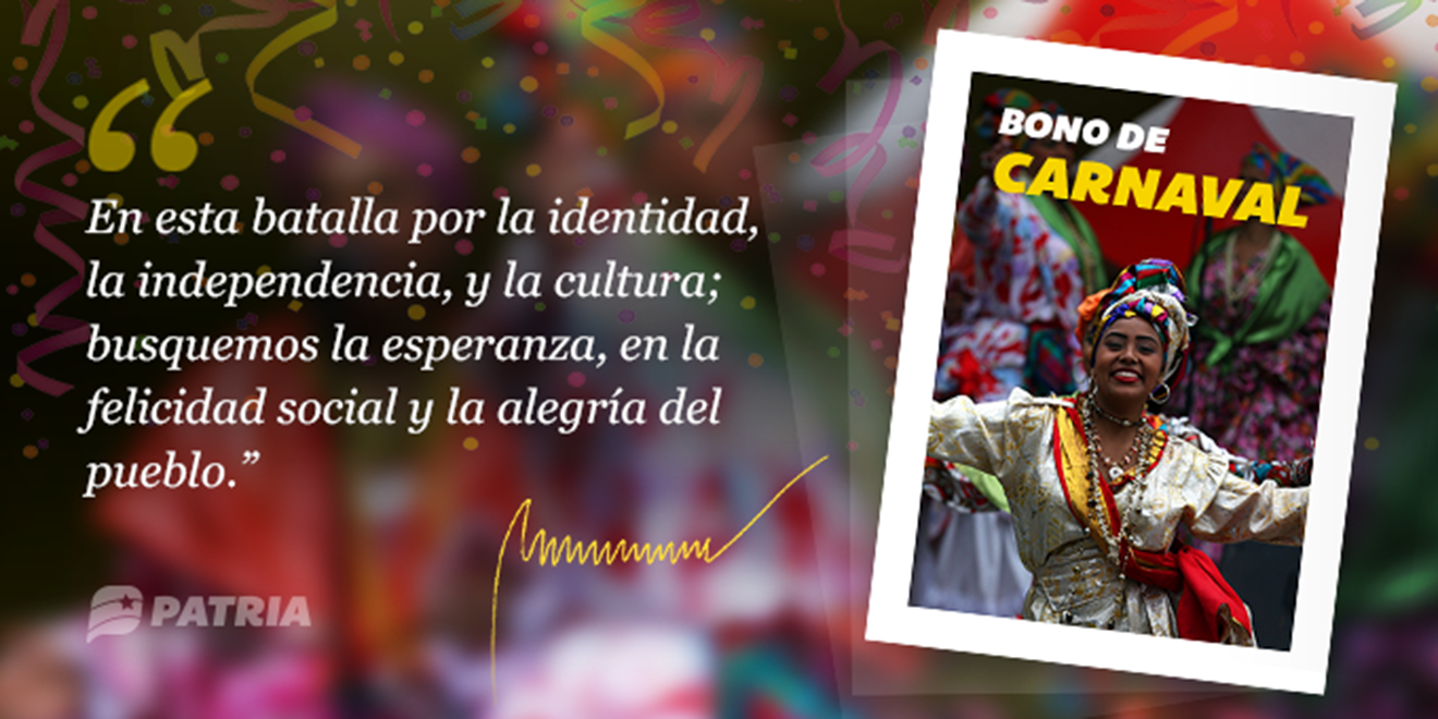El bono de Carnaval es una gratificación del Gobierno Bolivariano consignado a quienes conserven el Carnet de la Patria, consta al presente de 700.000 bolívares y es de carácter periódico, es uno de los bonos más nuevos, implementado desde Noviembre del 2018, este aporte, según palabras del presidente, es para ayudar a “que nadie le entristezca los carnavales al pueblo de Venezuela”.