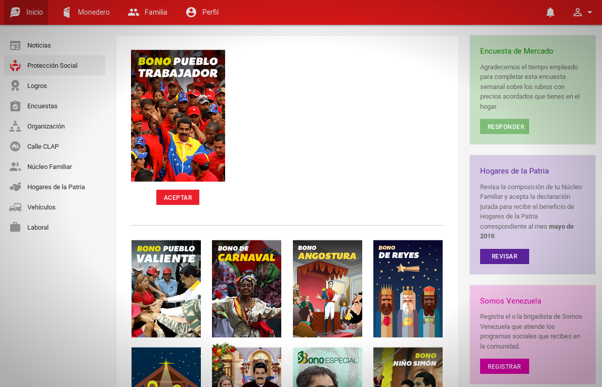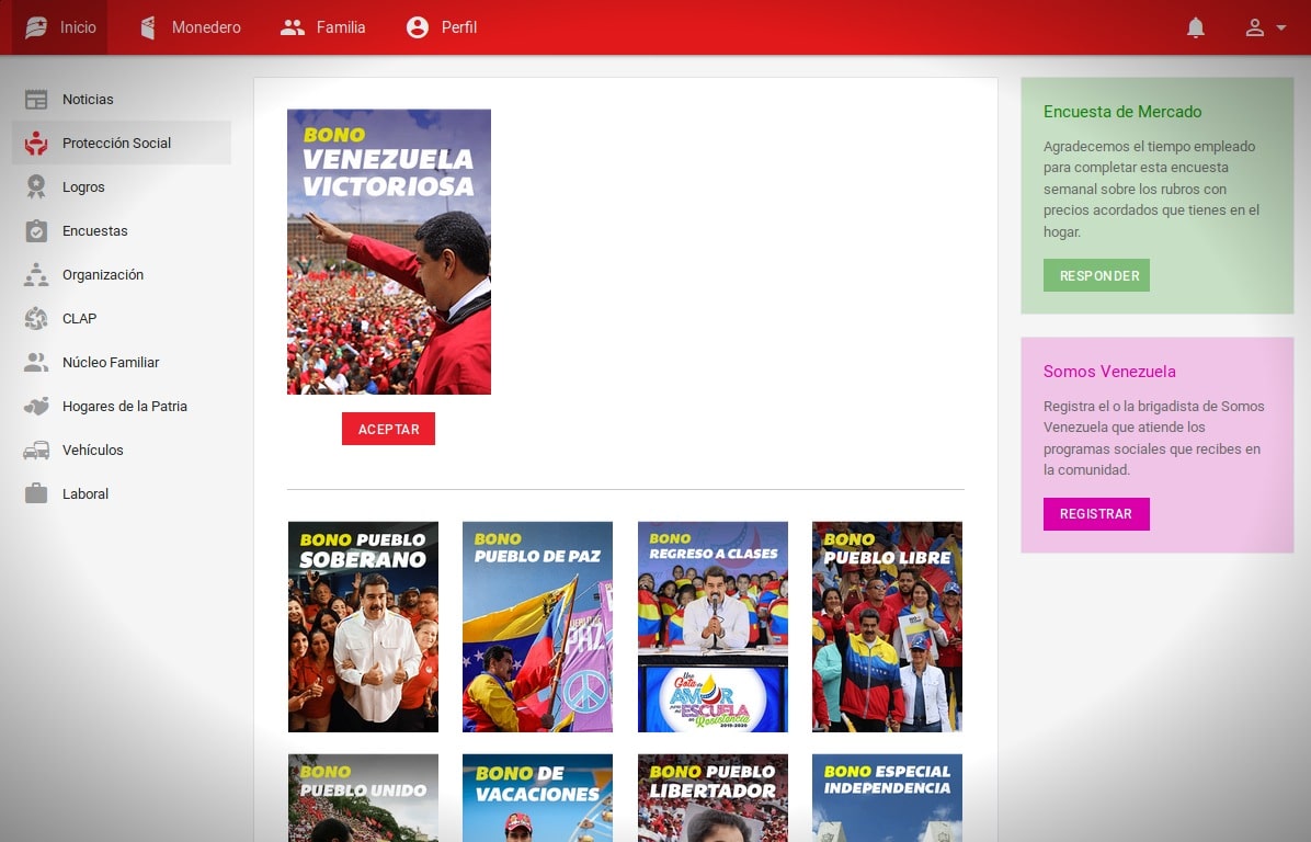 Algunos de los bonos de Vicesocial activados a través del Carnet de la Patria son: